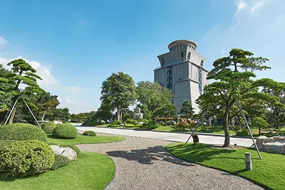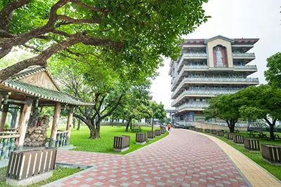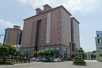 南台灣唯一採鋼骨SRC結構之納骨設施,採用中國經典官袍概念,依座、裙、身、肩、首、冠層層而上,全塔採用綠能建材,與自然生態連成一氣,是一座會呼吸的建築。